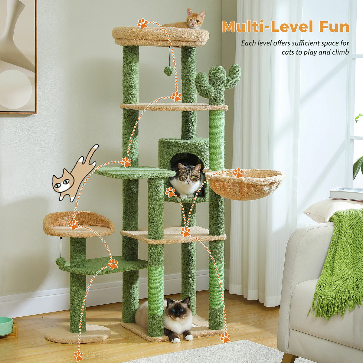 Large Indoor Cat Tree with XL Hammock & Scratching Posts